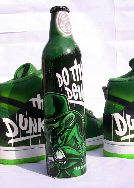 Green Label Art是Moutain Dew (美国汽水饮料)新开发的活动,目地是想要设计出最抢眼,跟得上潮流的瓶罐。目前,已经有12为名设计家参与制作,这当中包括Jeff Staple、Methamphibian、Chuck Anderson等等。相信大家对以上三位都有些许的了解,他们所设计的瓶罐都有自己的特色,而且用艺术的方式提升了很生活化的一个瓶罐。Green Label Art目前也开放大众提供设计,将会由12位designer选出10位得奖者。得奖者也可获得10000美元的奖金。