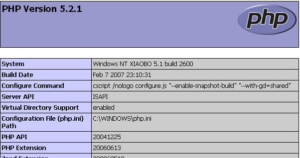 如果出现如下信息,则说明php已经配置好了