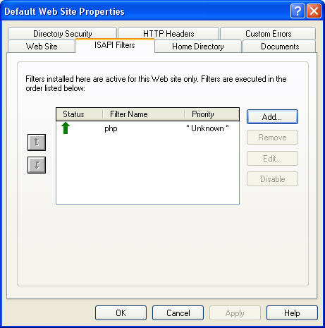 再次右键默认网站 点击 属性.进入 ISAPI筛选器.如图,前面状态有个绿色的向上箭头,表示筛选已经起作用.