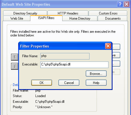 可执行文件:点击浏览 选中 C:\php5\php5isapi.dll