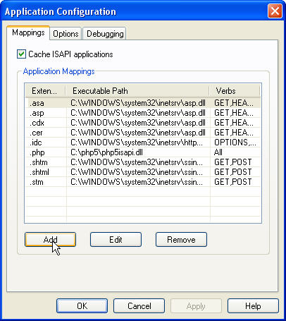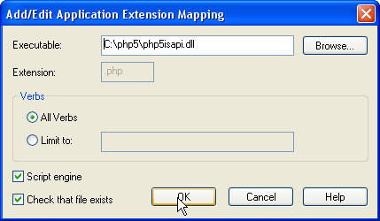 可执行文件: 点击浏览 选中 C:\php5\php5isapi.dll
