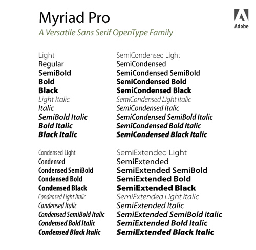Myriad Pro 共包含 40 款字型, 单个售价35 美元。