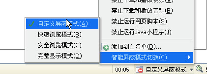 首页TT浏览器的显示模式是默认的“自定义屏蔽模式”是,如图: