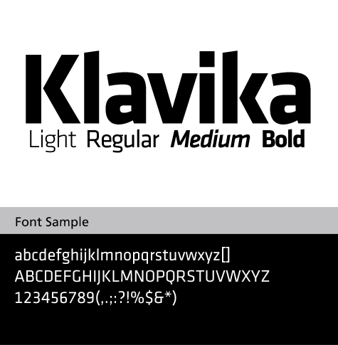 Klavika是有灵活的无衬线字体,便于广泛的编辑和应用与形象设计。