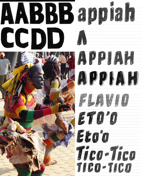 而同为Puma旗下的其他球队(其中包括喀麦隆、加纳、科特迪瓦、瑞士、乌拉圭)启用了另一全新字体Olembe,由Paul Barnes设计。